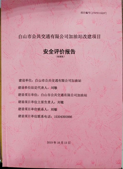 JTAP2115207--白山市公共交通有限公司加油站改造項(xiàng)目安全評價(jià)