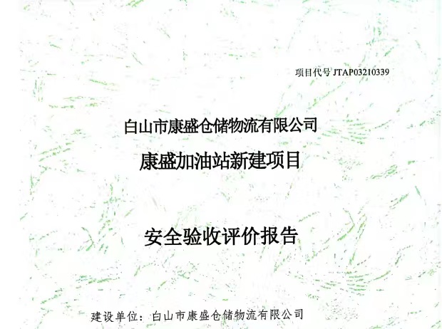 JTAP03210339白山市康盛倉(cāng)儲(chǔ)物流有限公司康盛加油站新建項(xiàng)目安全驗(yàn)收評(píng)價(jià)