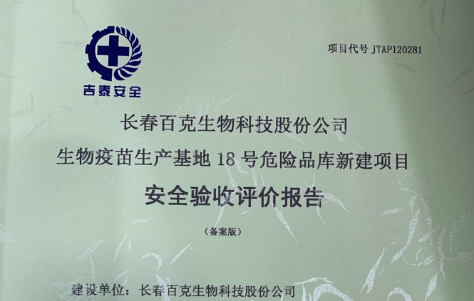 JTAP120281--長春百克生物科技股份公司生物疫苗生產(chǎn)基地18號危險(xiǎn)品庫新...