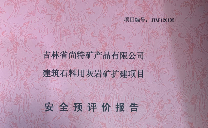JTAP120135--吉林省尚特礦產(chǎn)品有限公司建筑石料用灰?guī)r礦擴(kuò)建項(xiàng)目安全預(yù)評(píng)...