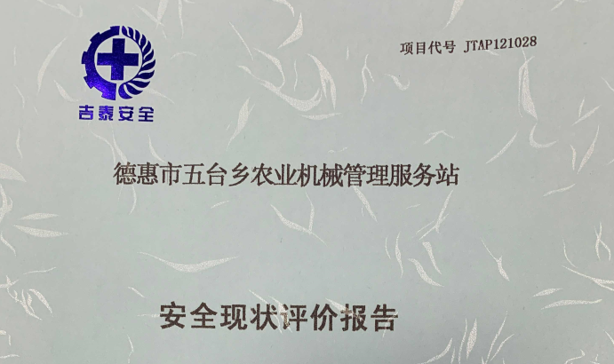 JTAP121028--德惠市五臺(tái)鄉(xiāng)農(nóng)業(yè)機(jī)械管理服務(wù)站安全現(xiàn)狀評(píng)價(jià)