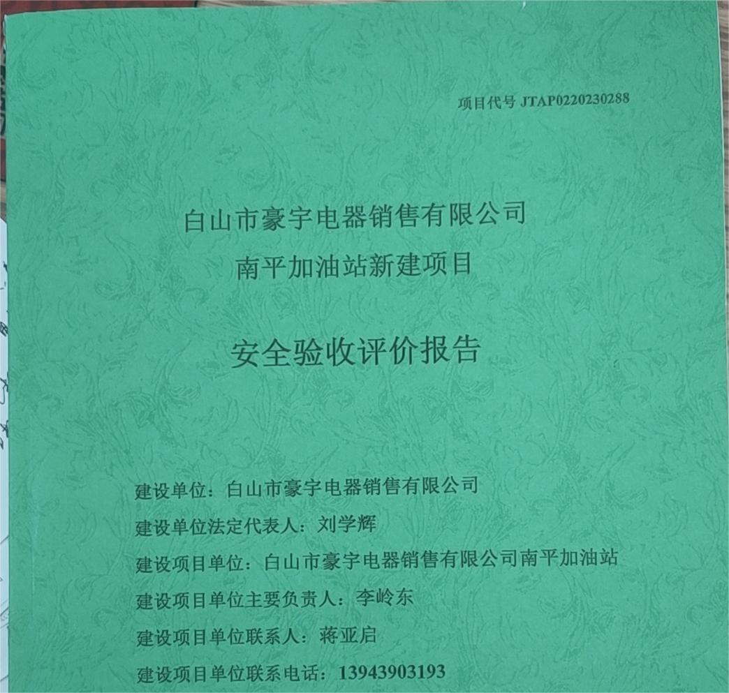 JTAP0220230288--白山市豪宇電器銷售有限公司南平加油站新建項(xiàng)目安全...